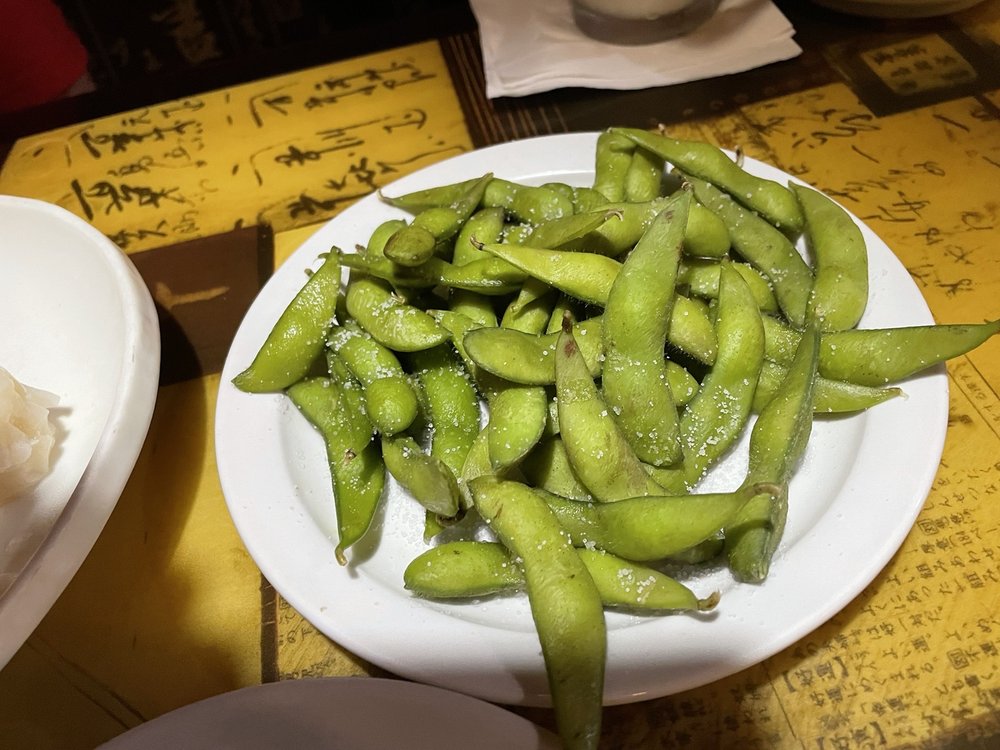 Yellowtail slices with jalopeno, topped with jalopeno sauce.