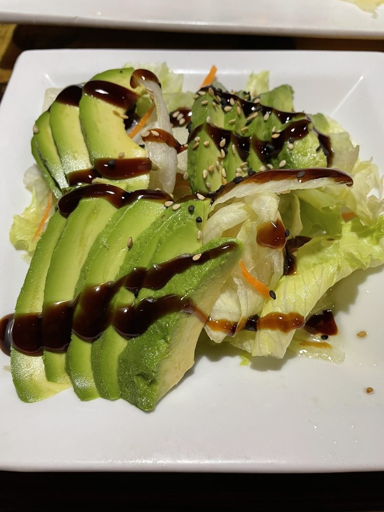 Tempura eel, avocado inside, and then lobster salad on the top. Eel sauce.